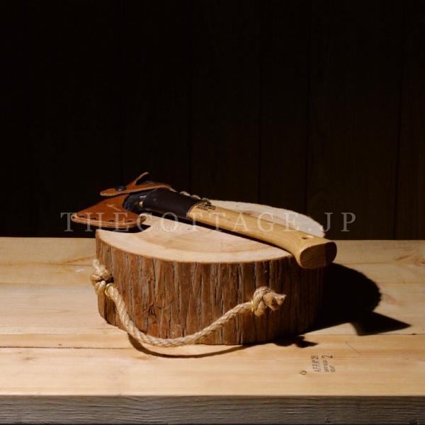 COTTAGE コテージ 薪割り台 キャンプ用 ハンドル付 高さ10cm /樹皮付き